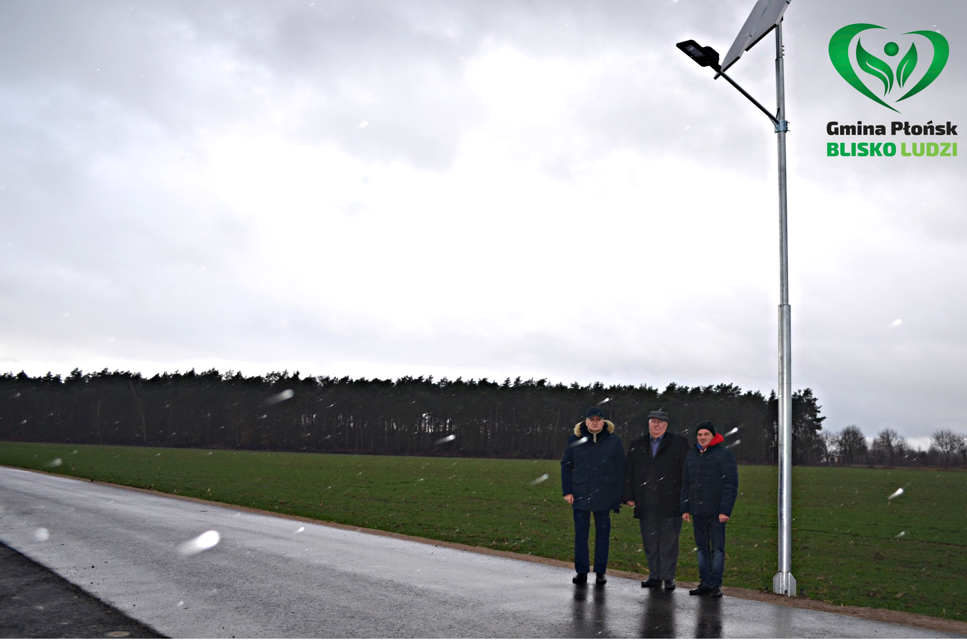 Na zdjęciu od lewej Sołtys miejscowości Skarżyn Pan Wojciech Kowalski, Wójt Gminy Płońsk Aleksander Jarosławski oraz Radny Sołectwa Cholewy, Skrzynki, Wroninko Pan Jacek Salak.